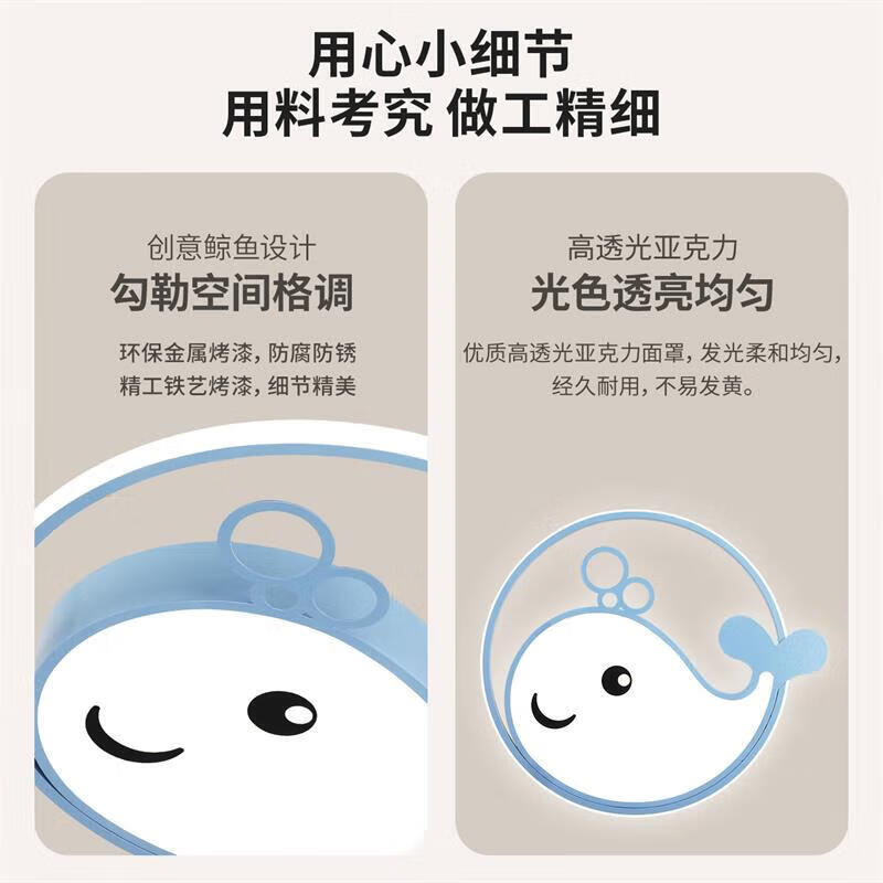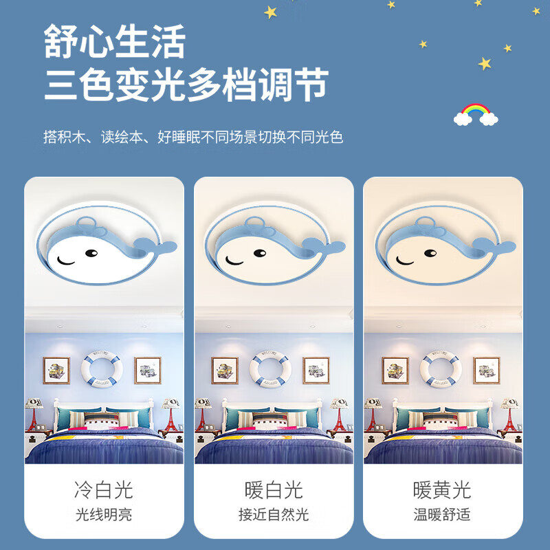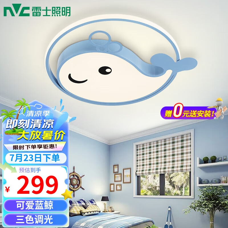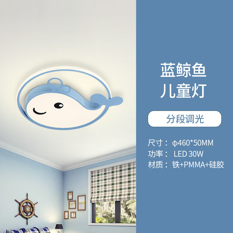 雷士(NVC)卧室吸顶灯 儿童房温馨创意 卡通儿童灯 30瓦三段调光蓝鲸鱼价格:383.00元!
