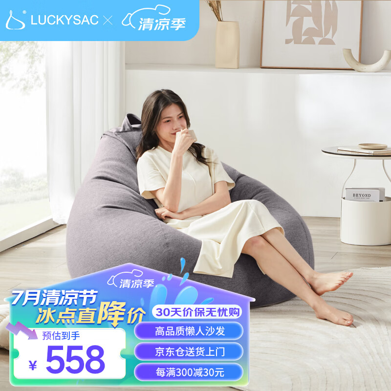 LUCKYSAC懒人沙发豆袋EPP 单人布艺客厅卧室阳台小沙发 尊享款暖灰色价格:618.00元!