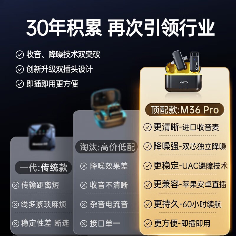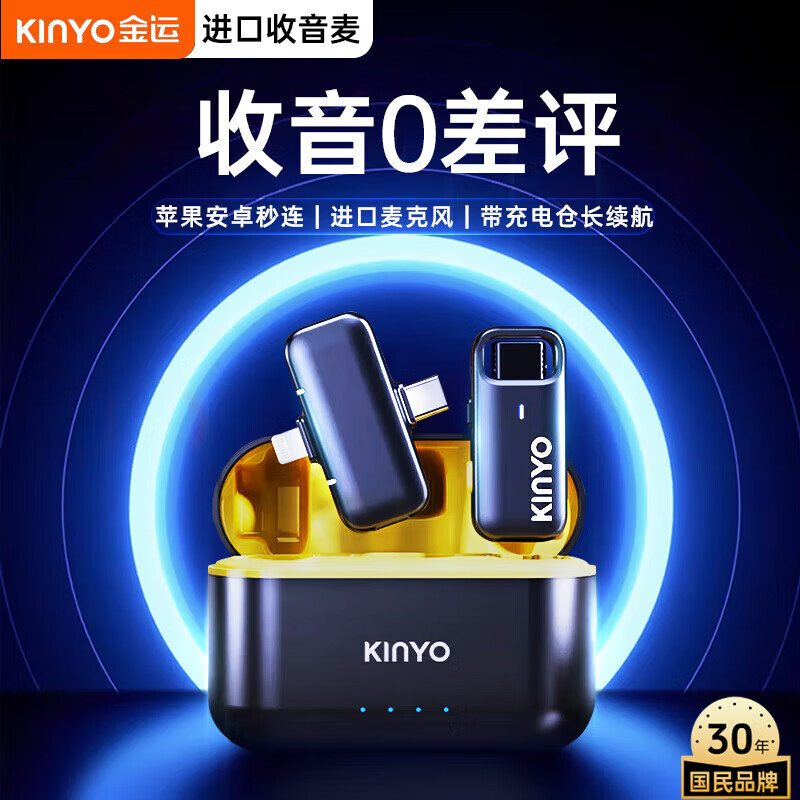 金运【收音0差评】无线领夹麦克风直播K歌收音麦降噪一拖一收音器手机电脑通用便携话筒录音M36Pro价格:179.00元!
