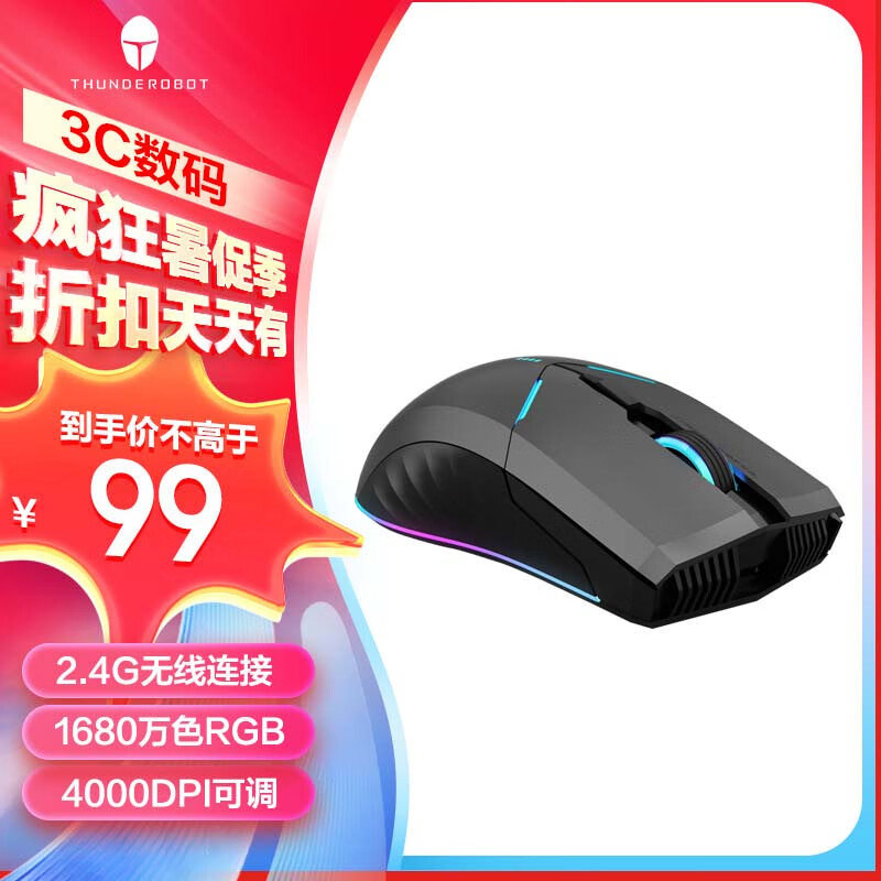 雷神(ThundeRobot)ML701无线游戏鼠标 办公电竞机械鼠标 可充电长续航 七色灯带 csgo绝地求生cf吃鸡鼠标价格:99.00元!