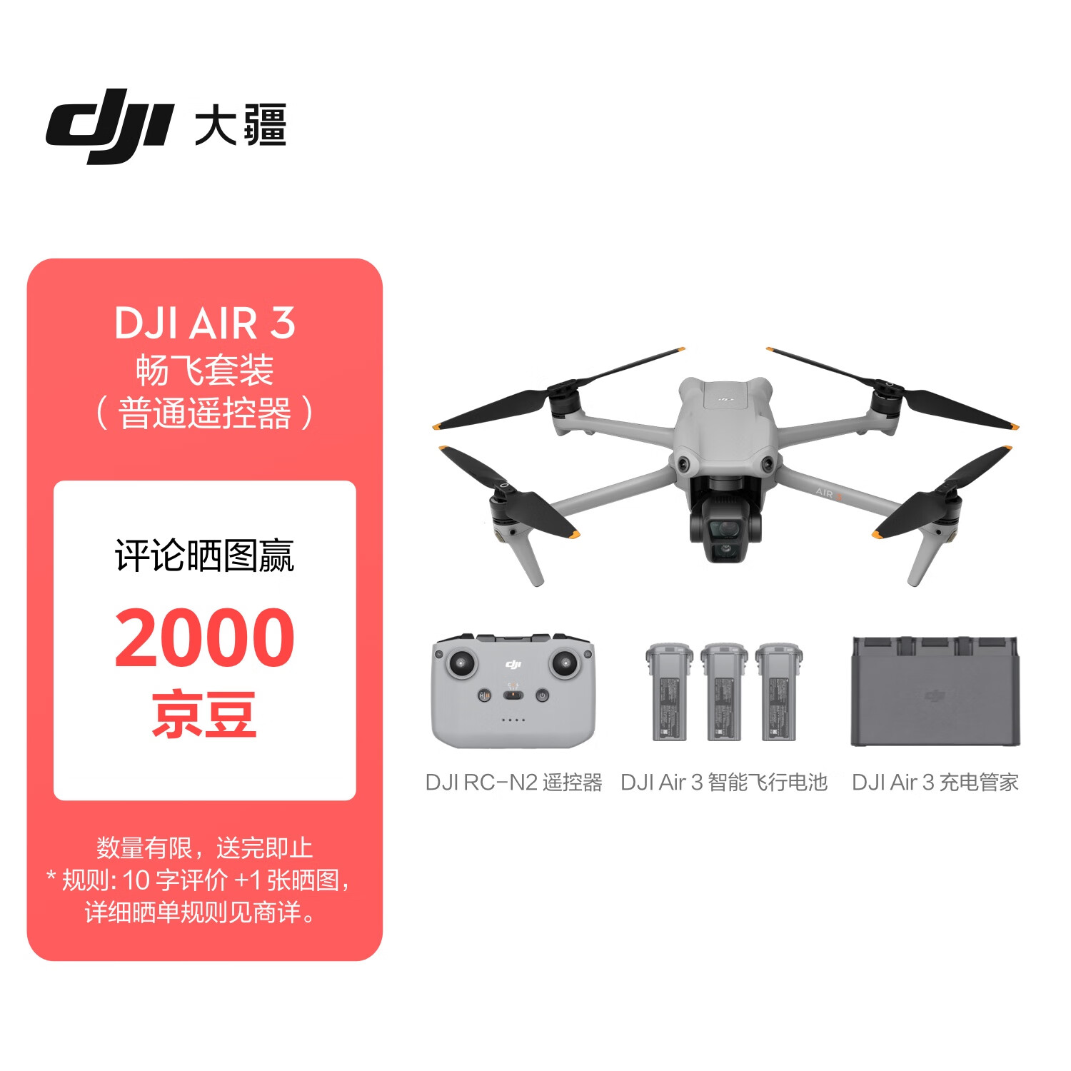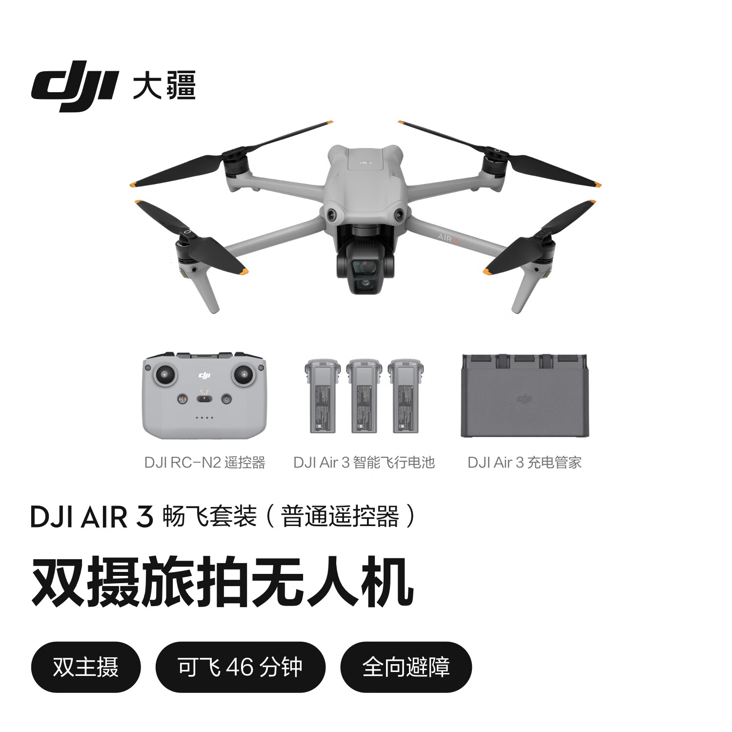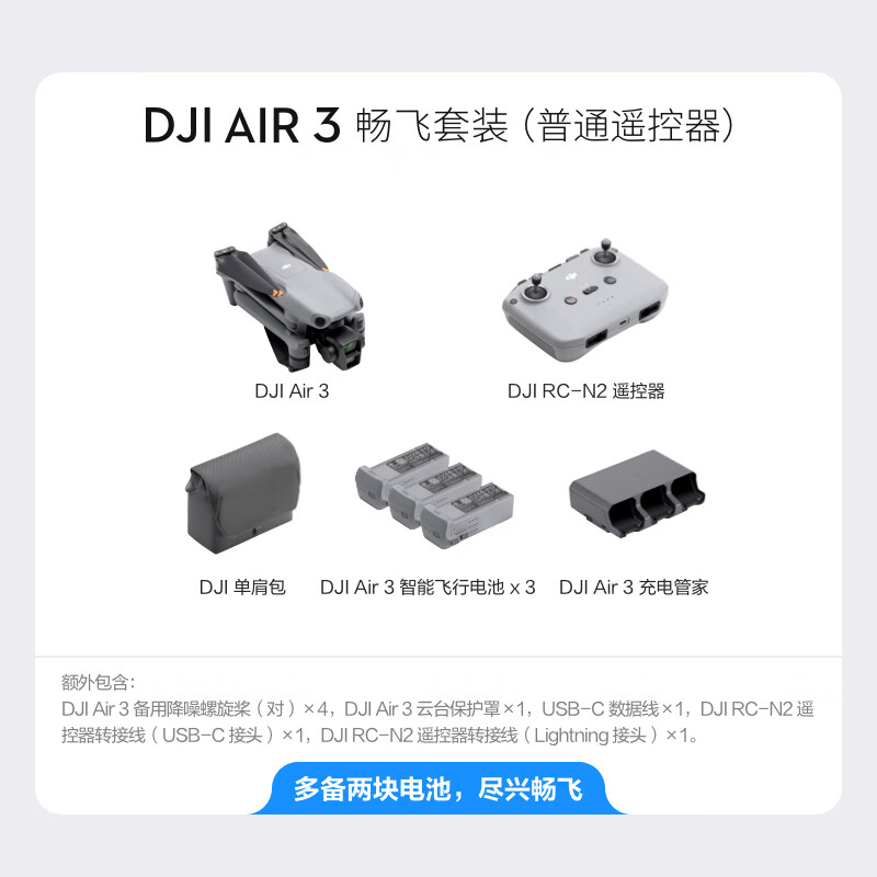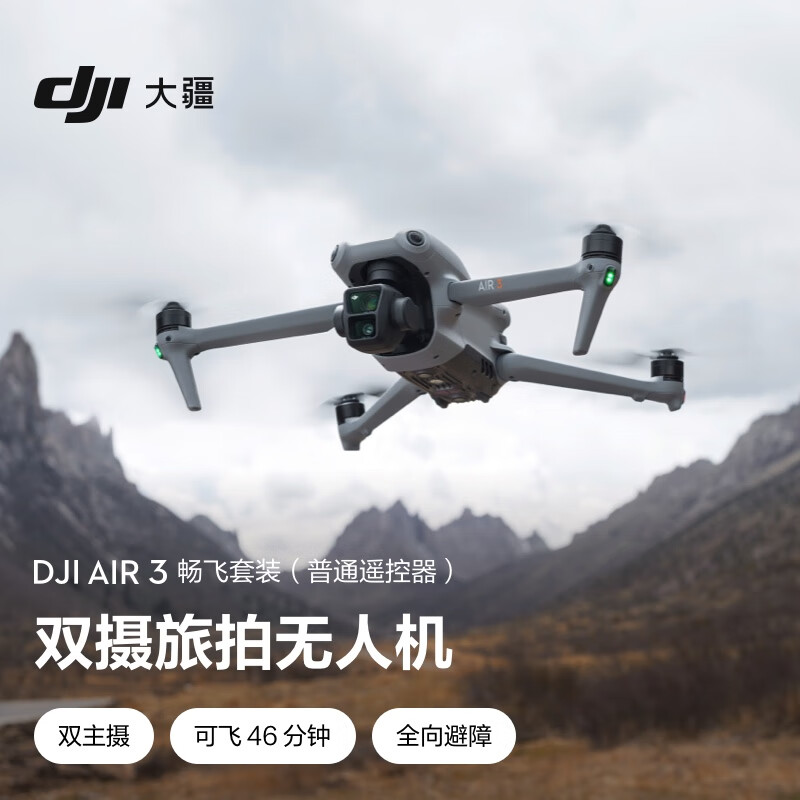 大疆 DJI Air 3 畅飞套装(普通遥控器)航拍无人机 中长焦广角双摄旅拍 高清专业航拍+128G内存卡价格:8582.90元!