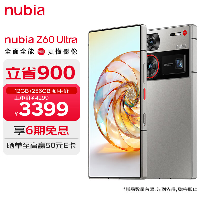 nubia努比亚Z60 Ultra 屏下摄像12GB+256GB 银河 第三代骁龙8 三主摄OIS+6000mAh长续航 5G手机游戏拍照价格:4299.00元!