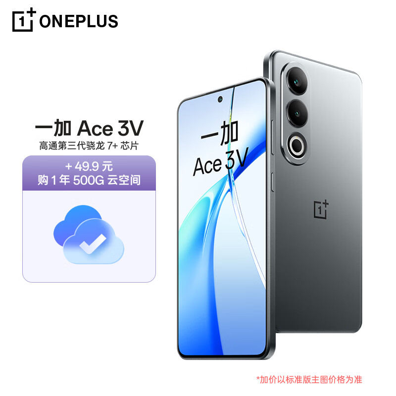 一加 Ace 3V 12GB+256GB 钛空灰 高通第三代骁龙 7+ 芯片 5500mAh 超长续航 OPPO AI 5G直屏游戏手机价格:2048.90元!