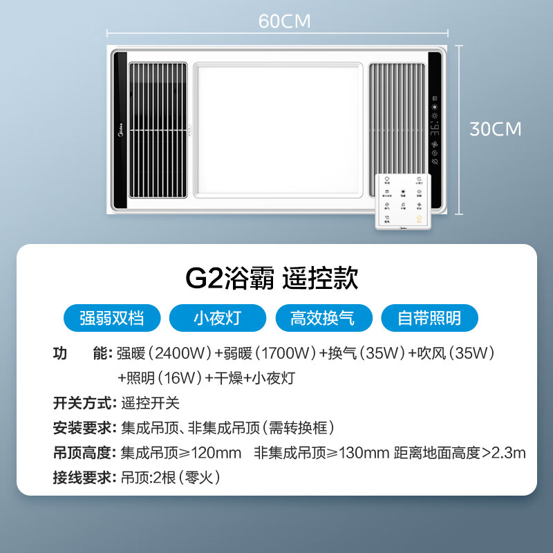 功能:灯暖,风暖,照明,换气,数字显示,吹风