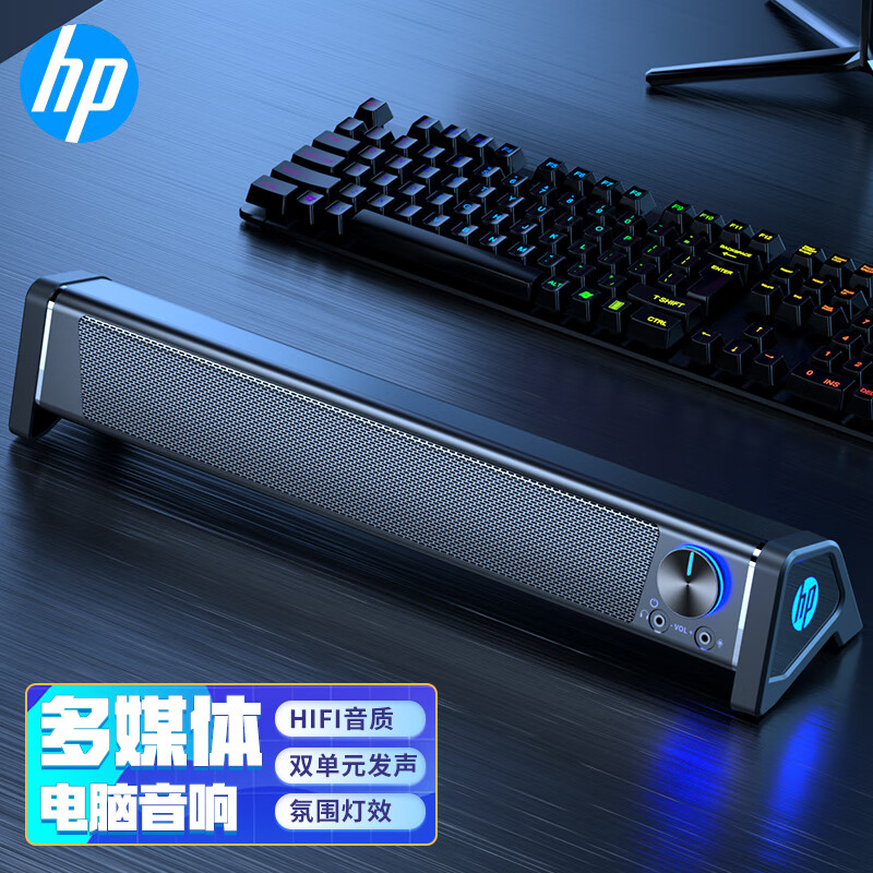 惠普(HP)DHS-4121音响电脑迷你长条家用桌面台式机笔记本游戏电竞低音炮RGB灯灰色多媒体扬声器送礼礼物价格:139.00元!