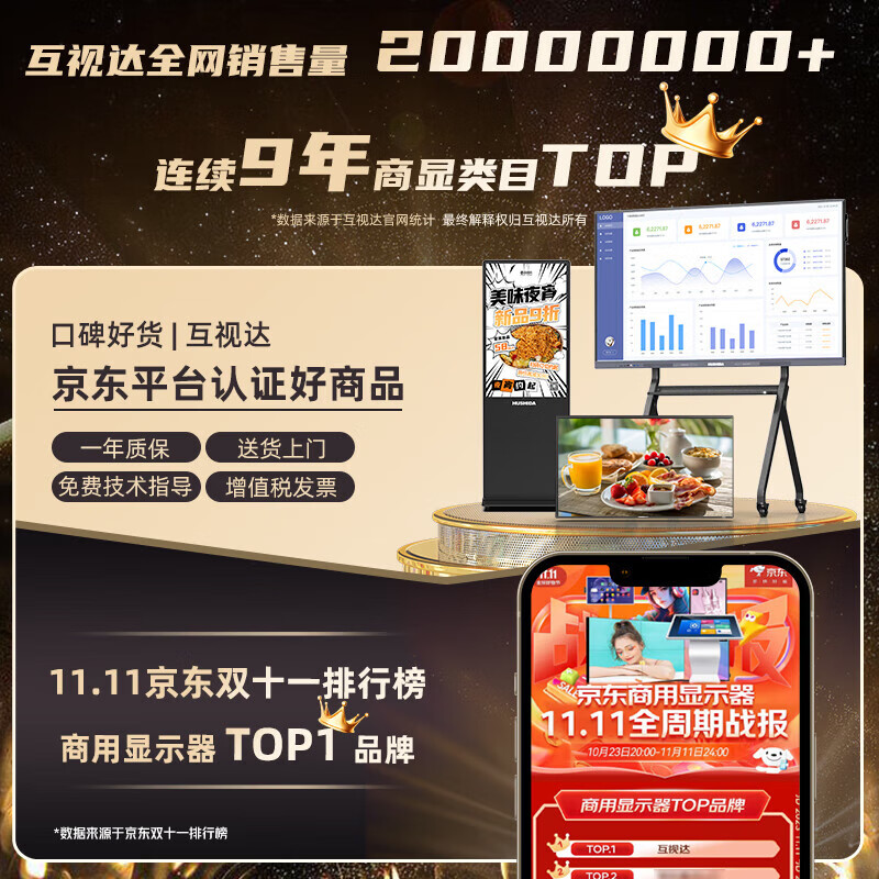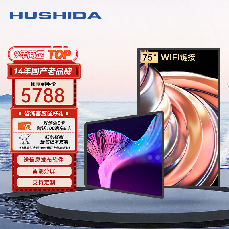 互视达(HUSHIDA)(三年质保)75英寸壁挂广告机显示屏 高清液晶数字标牌显示器网络版(非触摸)LY-75价格:5300.00元!