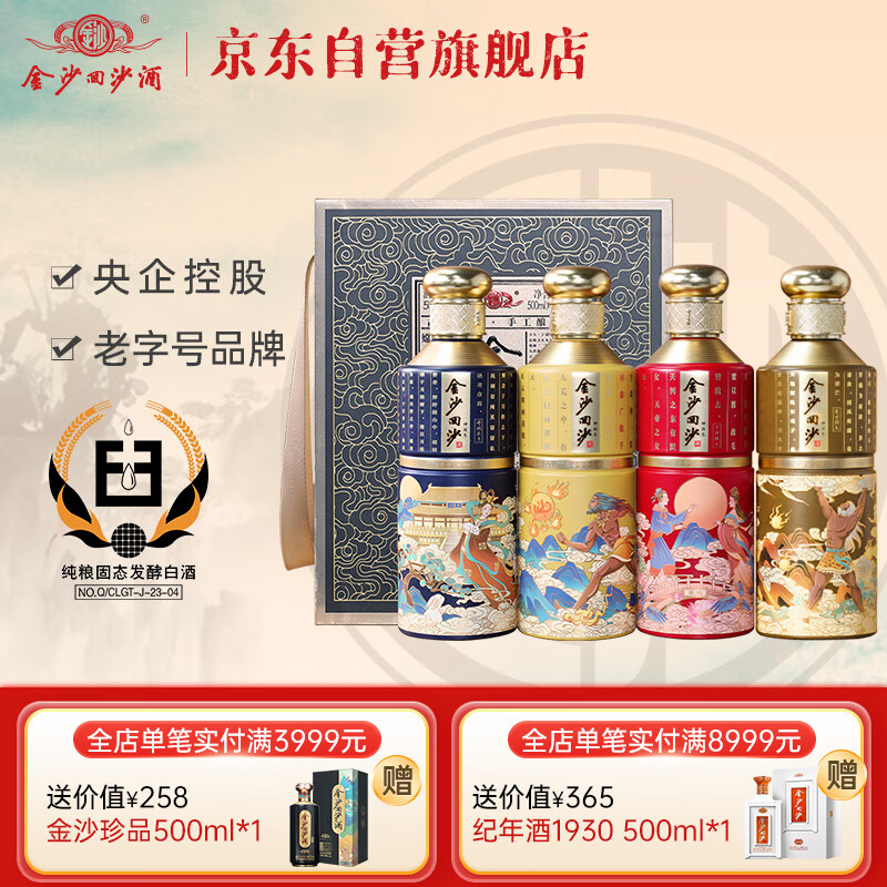 金沙回沙酒 神话志 酱香型白酒 53度 500ml*4瓶礼盒装 纯粮食酱酒价格:659.00元!