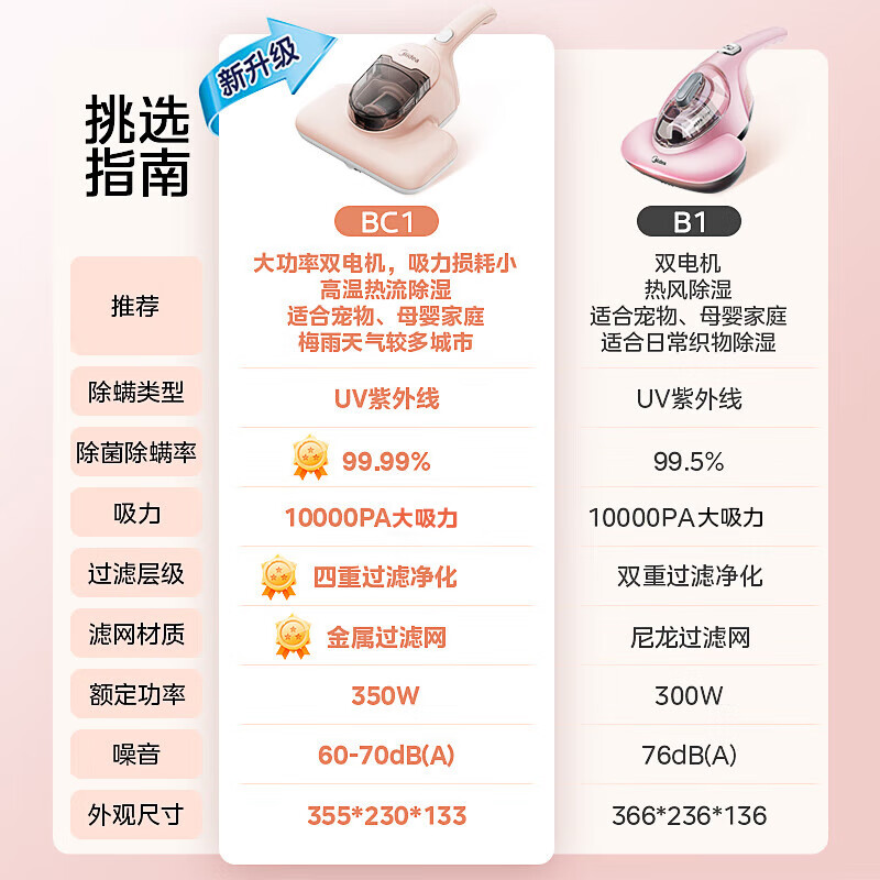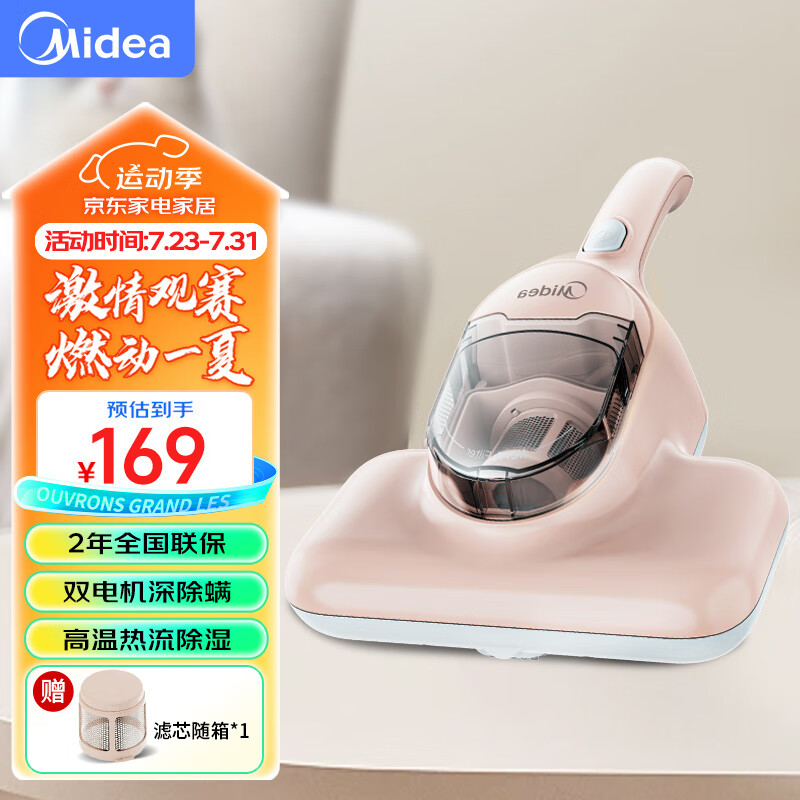 美的(Midea)除螨仪 家用床上手持吸尘除螨一体机 紫外线杀菌去螨虫 双电机恒温除湿 床上吸尘器BC1小旋风价格:169.00元!