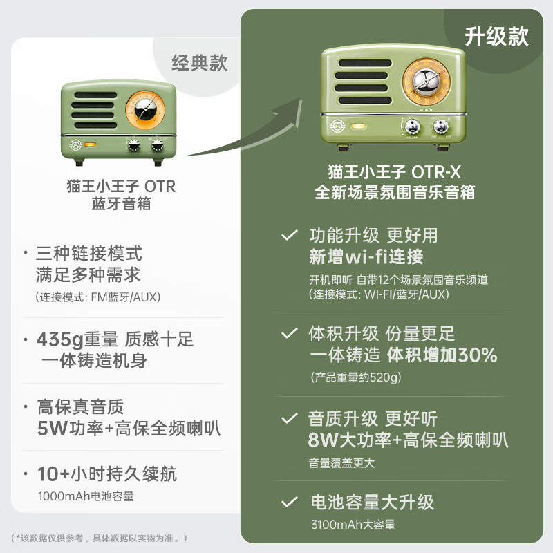 猫王收音机猫王音响 猫王小王子OTR无线便携式蓝牙音箱可爱复古小音响家用金属低音炮收音机 复古绿价格:389.00元!