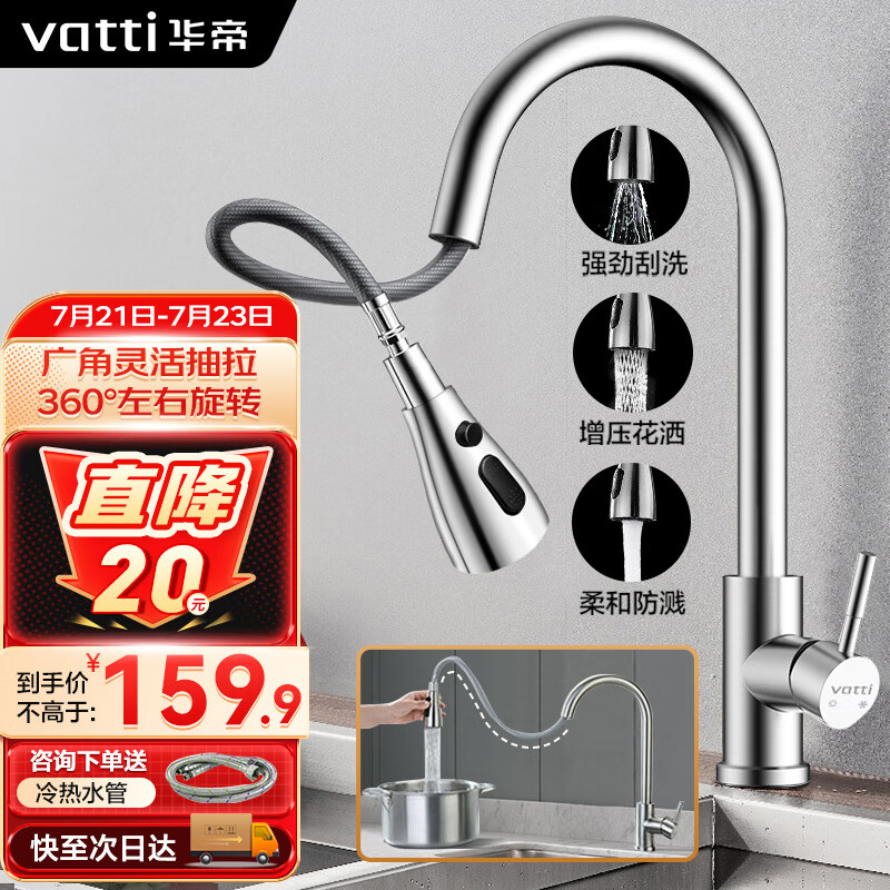 华帝(VATTI)厨房水龙头冷热水槽洗菜盘 万向旋转抽拉式延伸家用 304不锈钢价格:300.90元!
