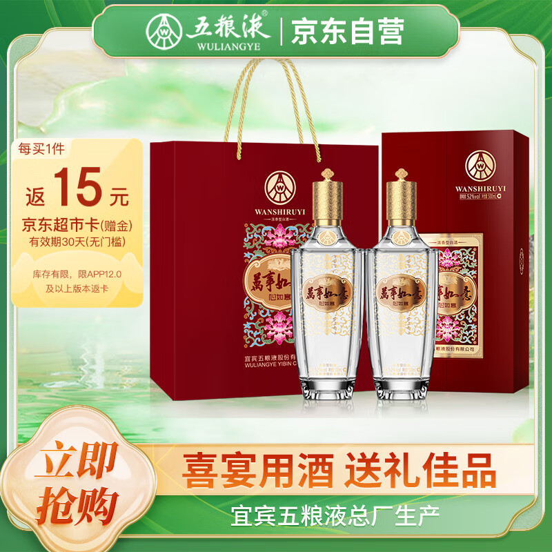 五粮液股份 中秋送礼 万事如意心如意 固态法浓香型白酒52度500ml*2瓶价格:748.00元!