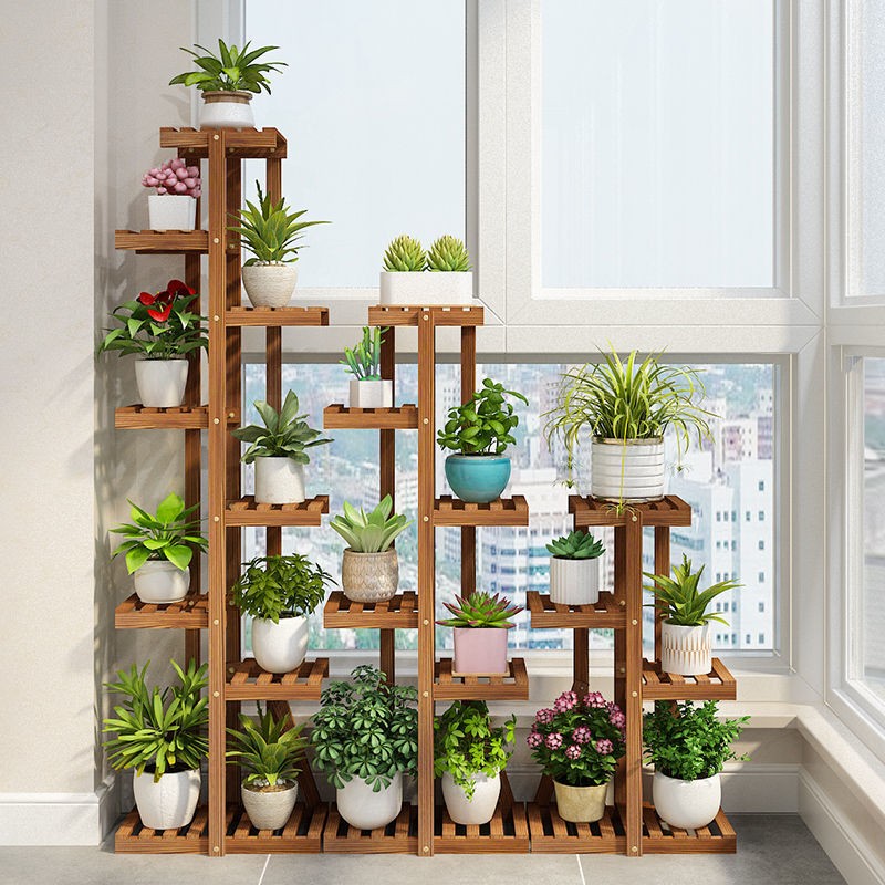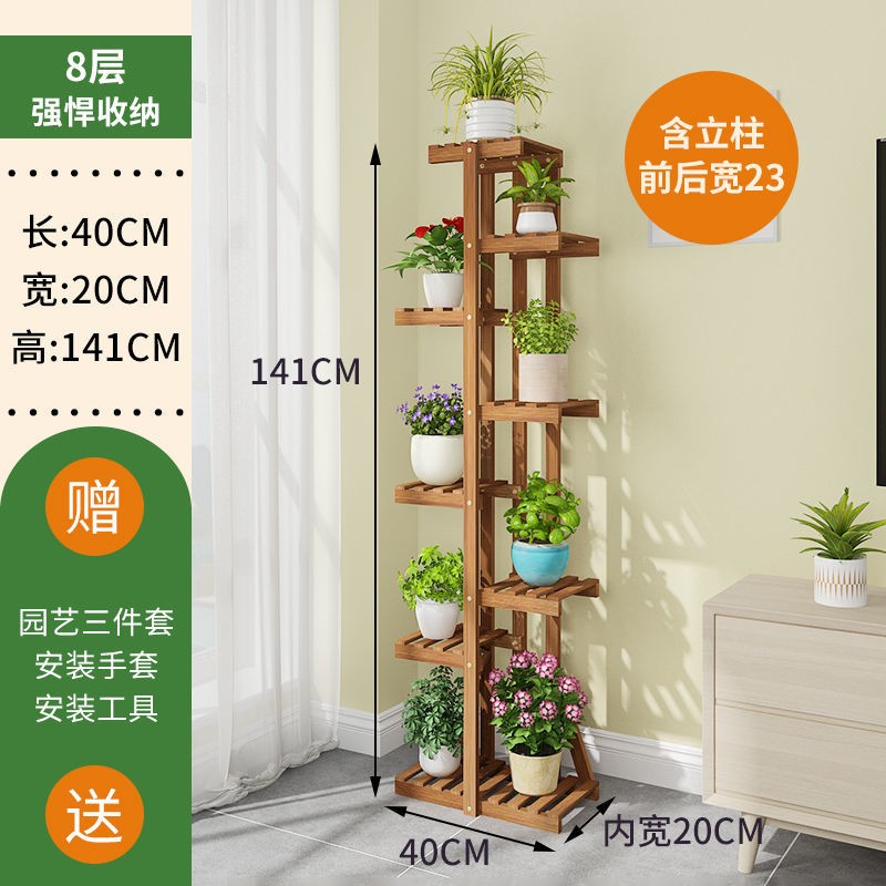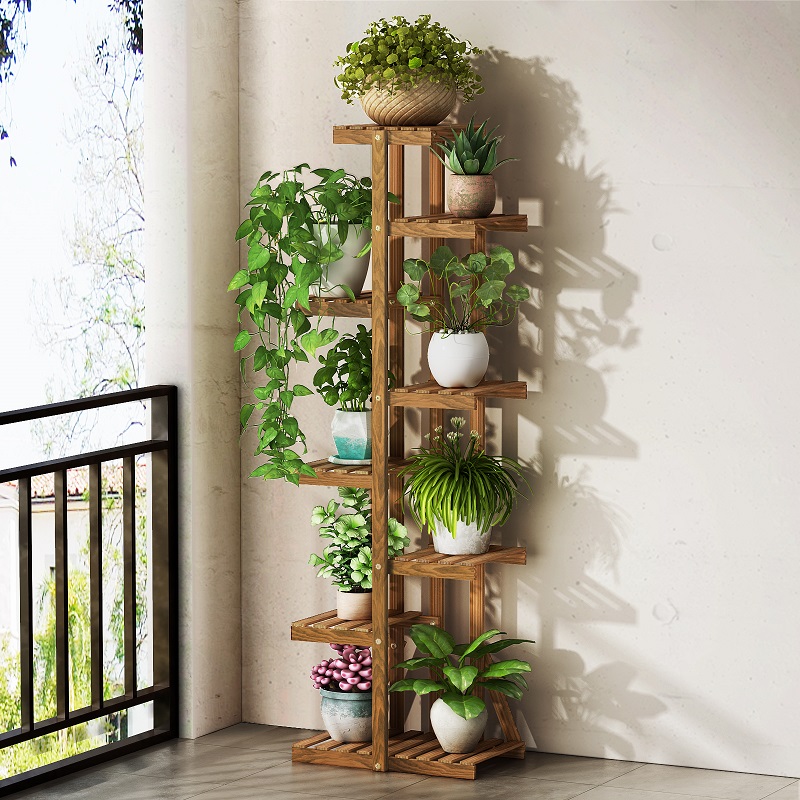 安尔雅 松木花架子花盆碳化室内外客厅阳台多肉植物简约置物架花摆架8层价格:129.00元!