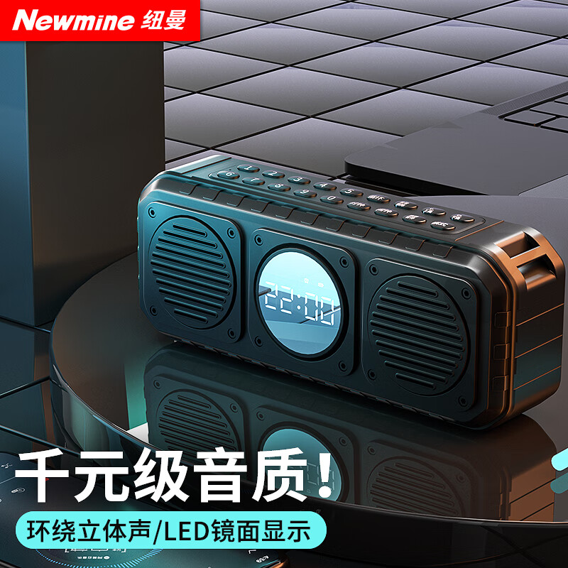 纽曼(Newmine)K223 无线蓝牙音箱家用桌面闹钟电脑音响户外便携式迷你小型低音炮插卡收款喇叭 黑色价格:98.30元!