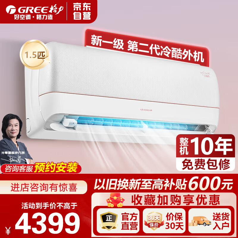 格力(GREE)空调1.5匹 冷静王+ 新一级能效 变频冷暖自清洁 大风量 壁挂式空调挂机 智选(1)价格:4229.00元!