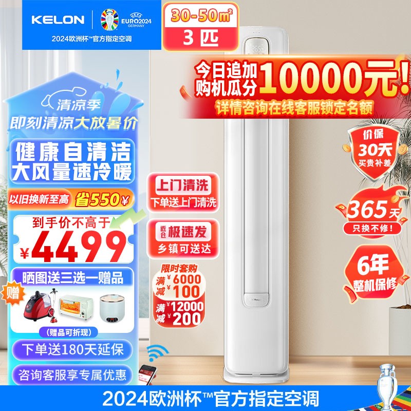 科龙(KELON)新一级能效变频节能省电冷暖除湿家用智能wifi柜式圆柱式柔风客厅柜机3匹立式KFR-72LW/QS1-X1价格:4499.00元!