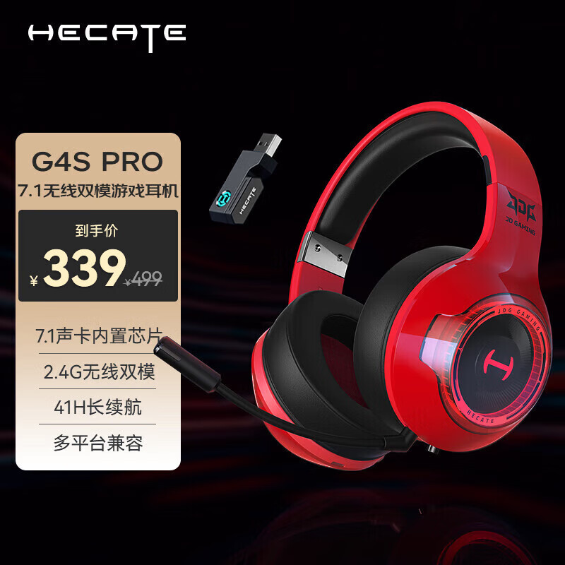 漫步者(EDIFIER)HECATE G4Spro战队版 2.4G蓝牙无线7.1游戏耳机头戴式 双模电脑电竞吃鸡耳机耳麦 红色价格:419.00元!
