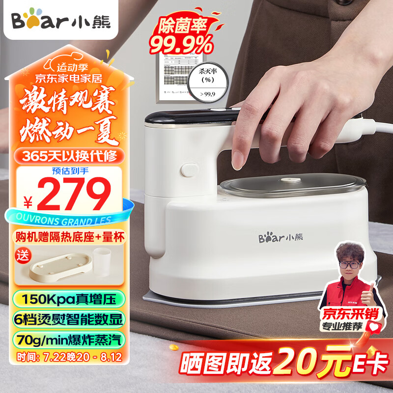 小熊(Bear)挂烫机家用手持熨烫机蒸汽电熨斗 增压蒸汽烫衣神器 旅游便携式爆炸蒸汽自清洁除菌DYD-C15Y1价格:279.00元!