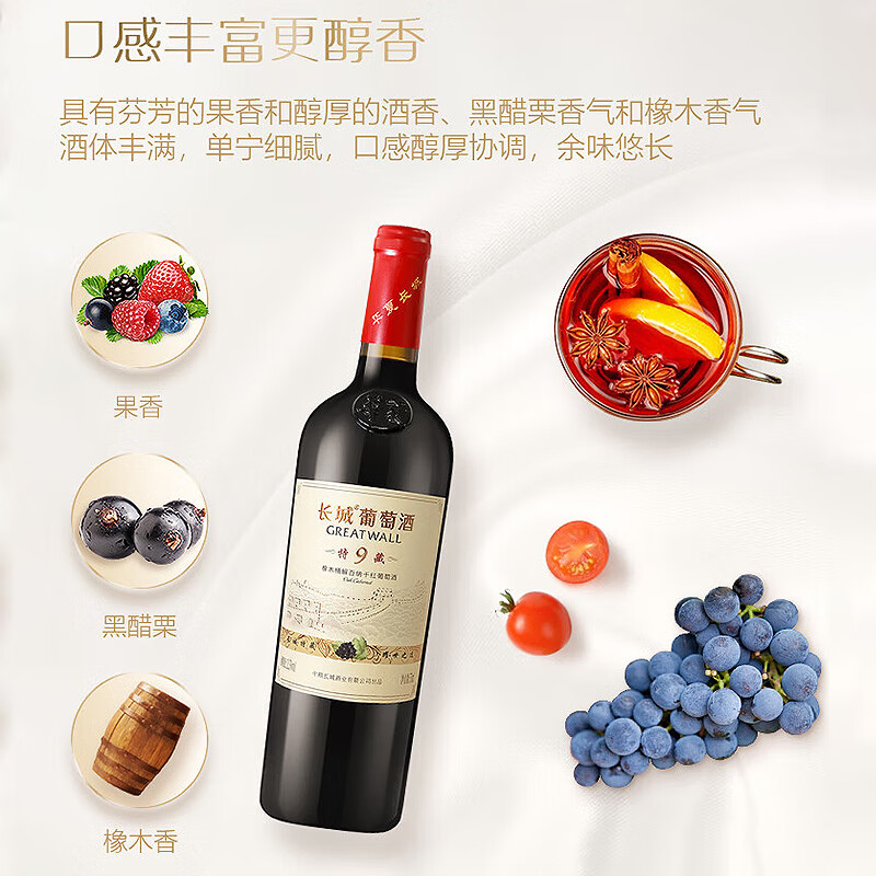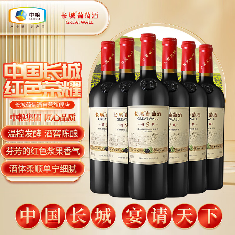 长城 特藏9 橡木桶解百纳干红葡萄酒 750ml*6瓶 整箱装价格:648.00元!