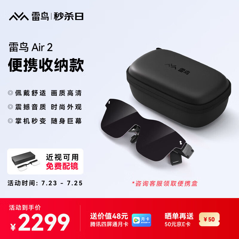 雷鸟Air2 便携收纳款 智能AR眼镜 高清巨幕观影眼镜 120Hz高刷 便携XR眼镜 非VR眼镜 出游露营观影价格:2899.00元!