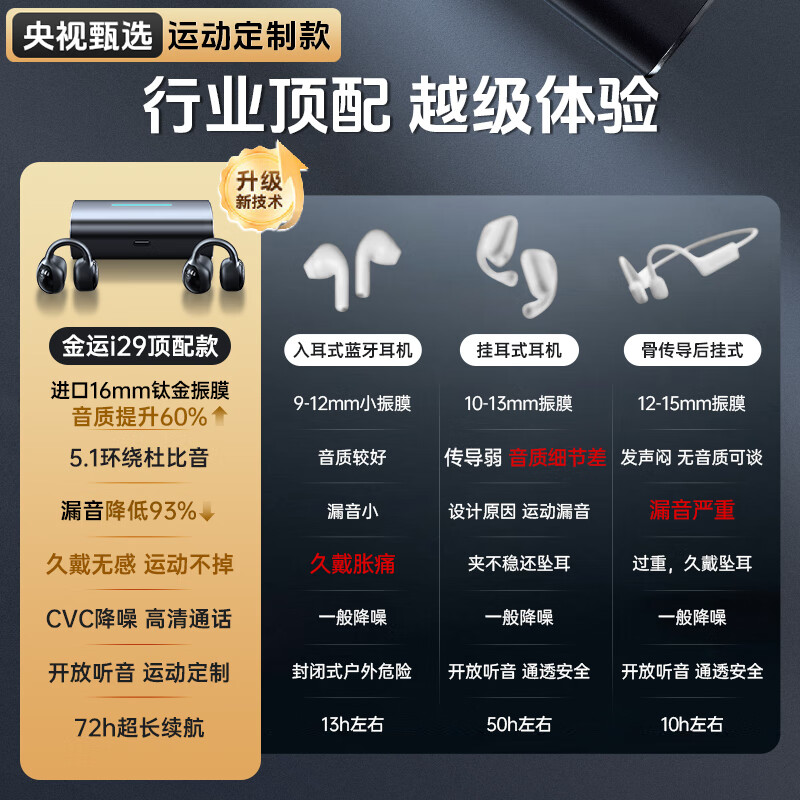金运【行业顶配】蓝牙耳机耳夹华为耳机夹耳式索尼骨传导概念无线开放不入耳运动跑步通话降噪适用苹果价格:163.90元!