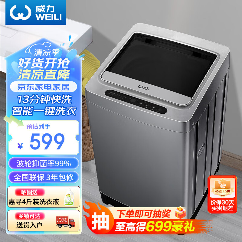 威力(WEILI)8公斤波轮洗衣机全自动 13分钟快洗 童锁 自判水位 单独脱水 以旧换新XQB80-1999J价格:599.00元!