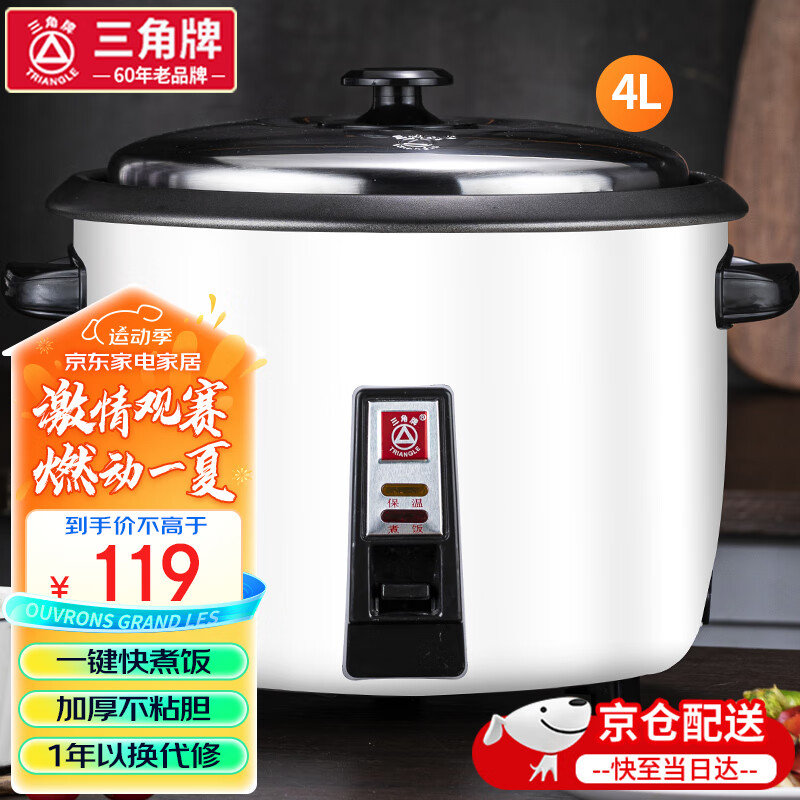 三角牌(Triangle)电饭煲家用 老式电饭锅小不粘内胆大容量柴火饭米饭锅鼓形锅白色 3-5人用 4L价格:119.00元!
