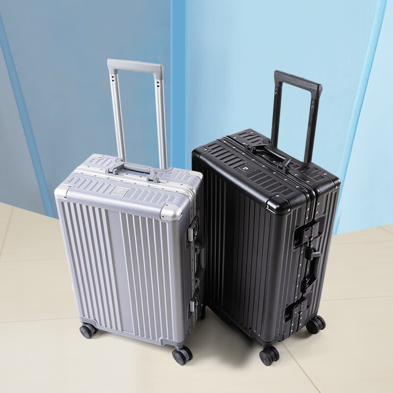 皮尔卡丹行李箱男旅行箱24英寸拉杆箱女万向轮学生皮箱大容量铝框密码箱价格:399.00元!