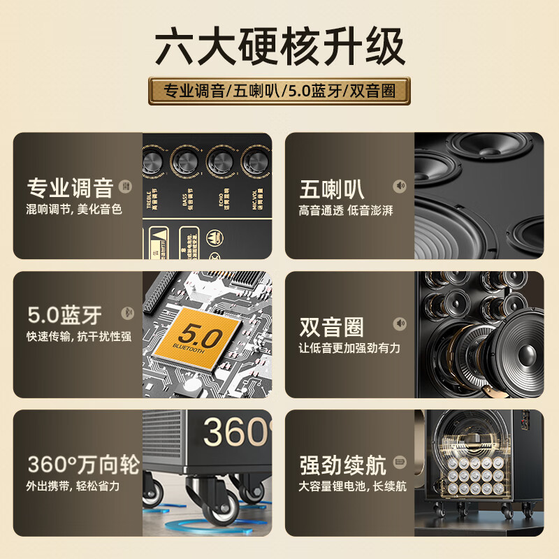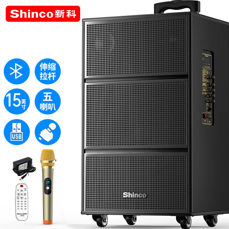 新科(Shinco)V50广场舞音响户外拉杆音箱三喇叭木质箱体大功率家用K歌移动摆摊低音炮 15吋单咪价格:885.50元!