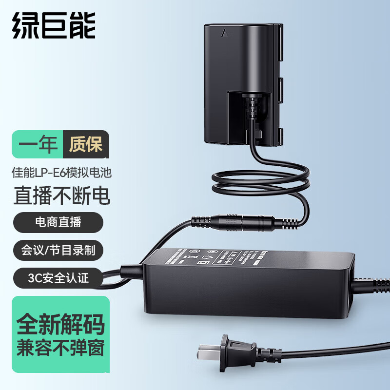 绿巨能(llano)佳能LP-E6相机假电池R6模拟电池外接电源适配器r5 5d4 6d2 7d2 80d 90d 5d3微单电池直播供电价格:129.00元!