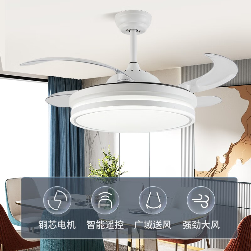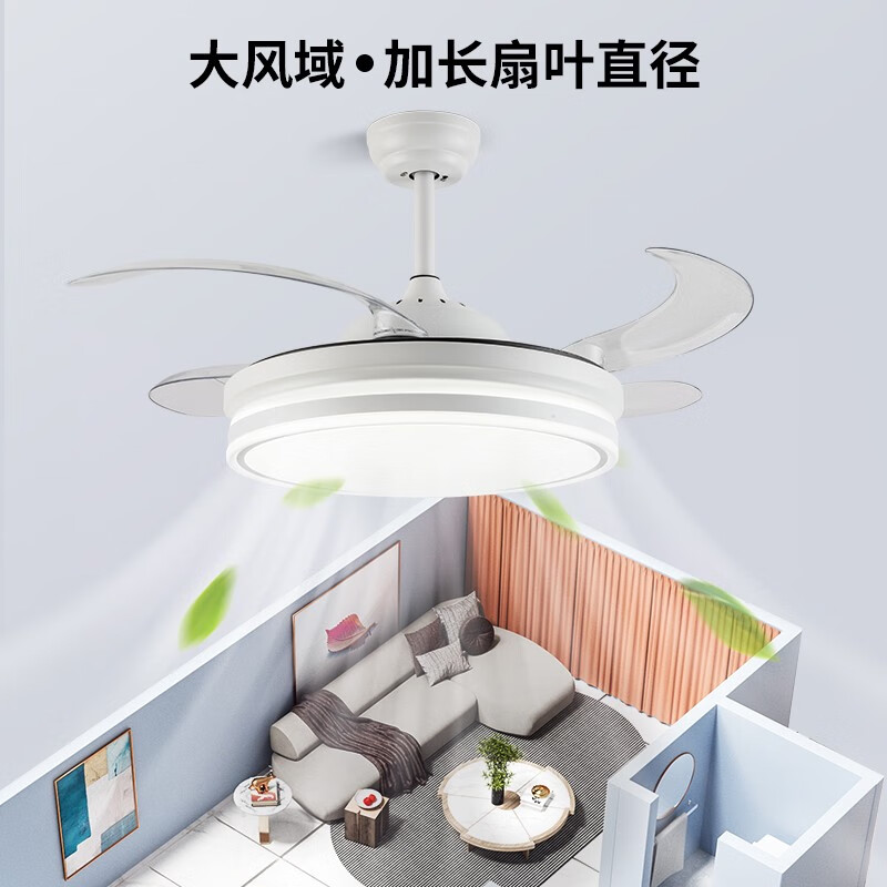 钻石牌(DIAMOND) 吊扇灯 隐形风扇灯led餐厅客厅卧室吊灯饰 现代简约电扇灯吸顶带灯吊扇 42吋白色双圆-6档遥控-正反转功能价格:359.00元!