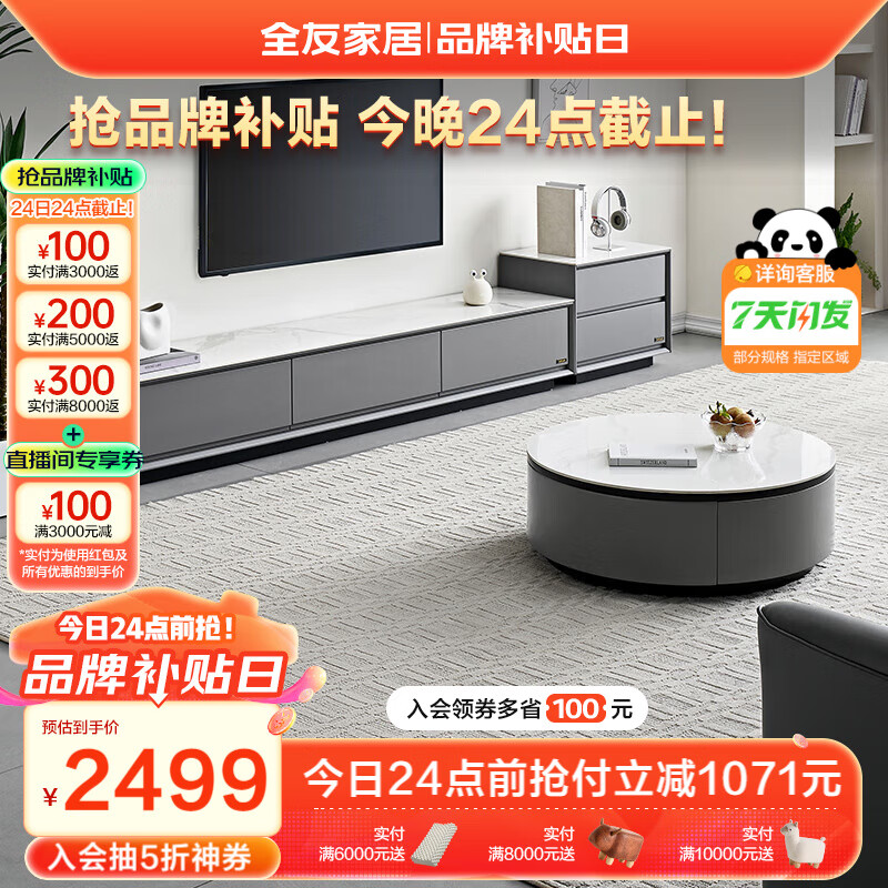 全友家居 岩板茶几电视柜组合现代简约客厅家用圆形茶几边几DW1055B价格:3570.00元!