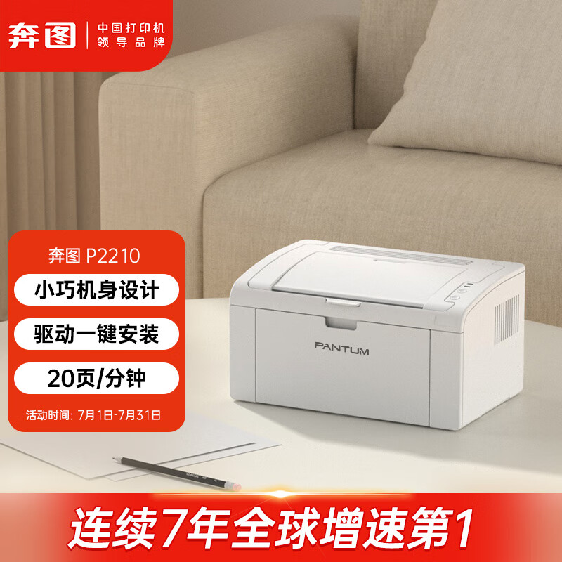 奔图(PANTUM)P2210 激光打印机家用办公商用 学生作业小型黑白打印机 仅支持电脑打印价格:549.00元!