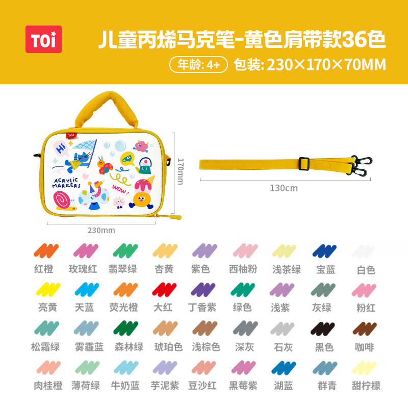 TOI丙烯马克笔肩带36色小学生儿童手绘涂鸦DIY水彩笔4-8岁男孩女孩生日礼物 显眼包36色价格:129.90元!