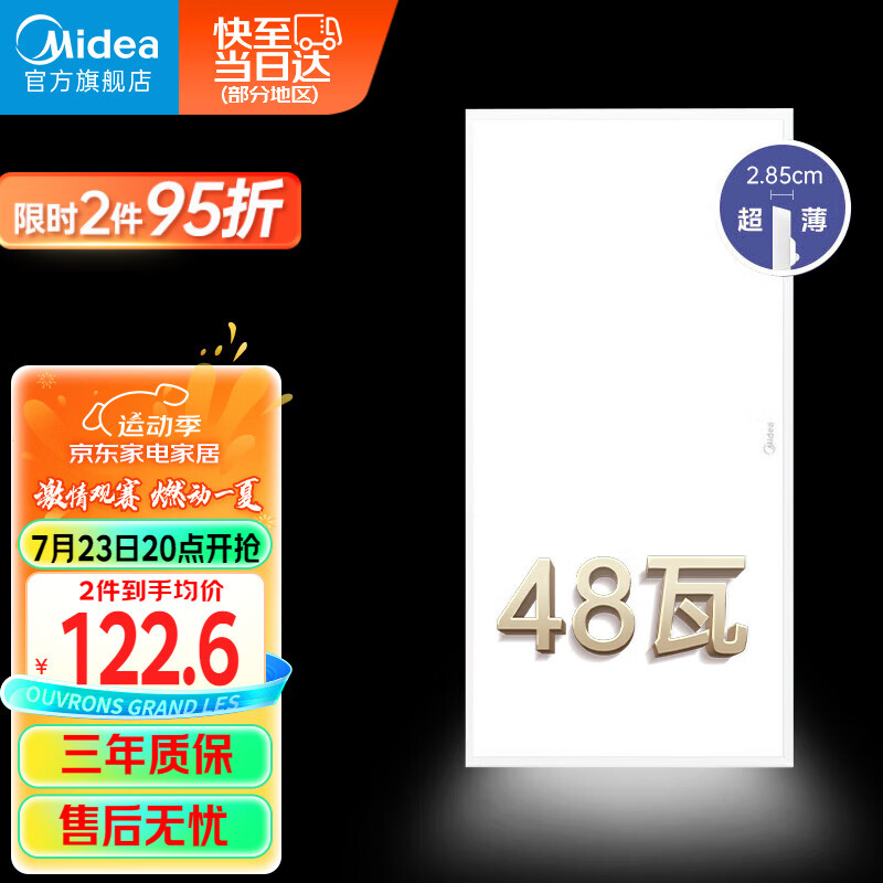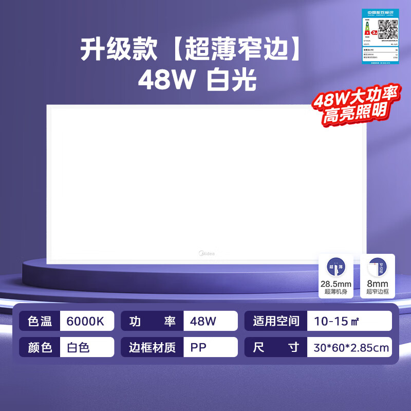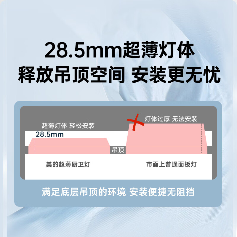 美的(Midea)LED集成吊顶灯厨房灯面板平板灯300x600高亮厨卫灯厕所吸顶灯48瓦价格:129.00元!