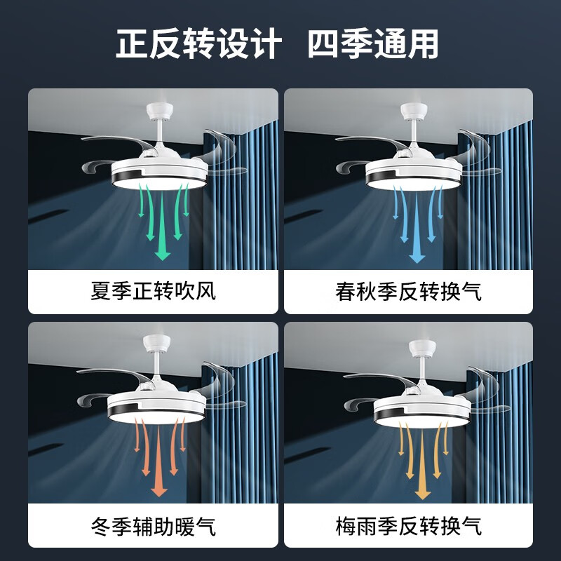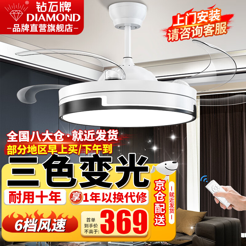 钻石牌(DIAMOND) 吊扇灯 隐形风扇灯led餐厅客厅卧室吊灯饰 现代简约电扇灯吸顶带灯吊扇 48吋白色侧面发光-6档遥控-正反转功能价格:429.00元!