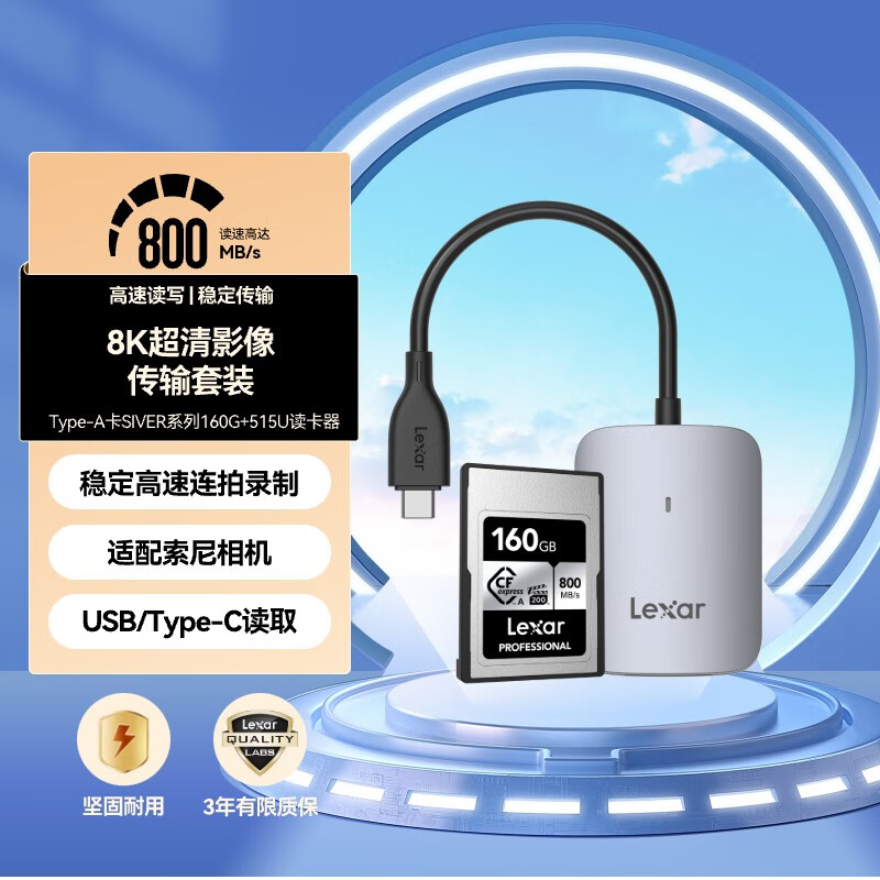 雷克沙(Lexar)索尼相机CFe Type A存储卡160G读卡器套装价格:898.00元!