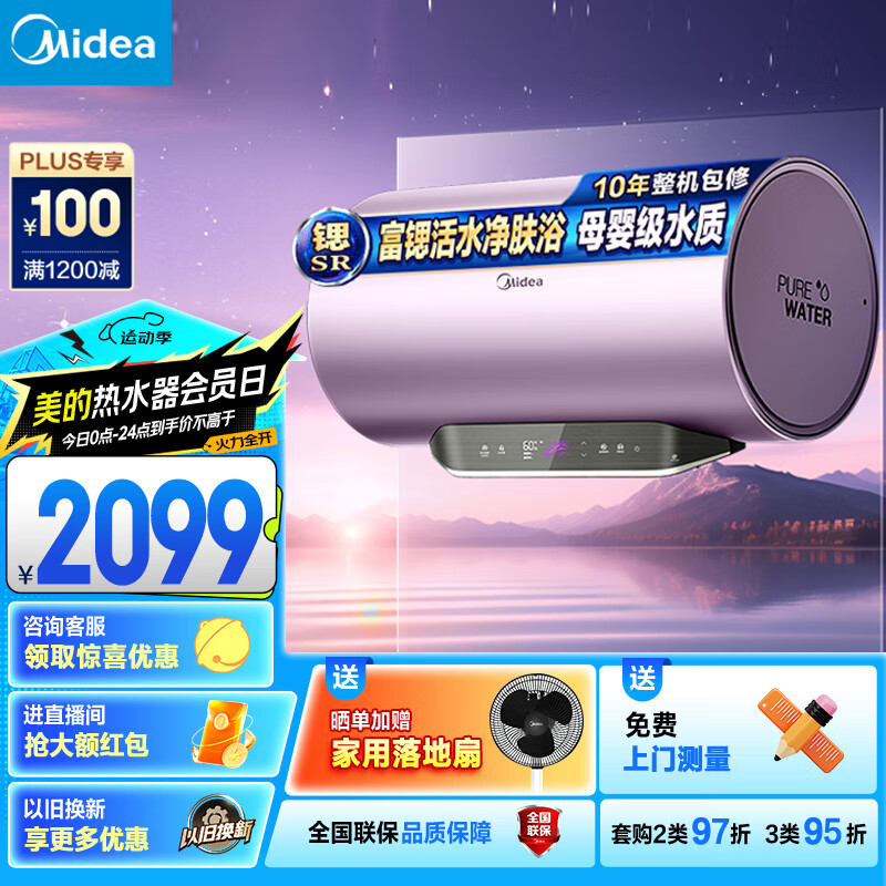 美的(Midea)TECH活水系列电热水器80升富锶养肤温泉浴免换镁棒一级变频家用储水式以旧换新F8025-RW9A(HE)价格:2299.00元!