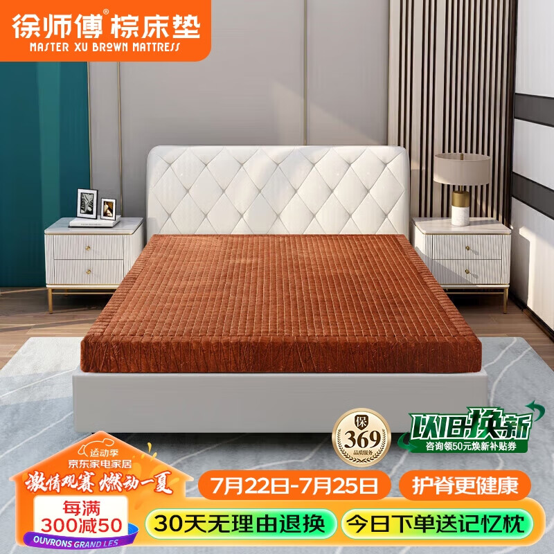 徐师傅全山棕床垫硬棕垫手工线缝单双人榻榻米床垫定制1.2*2米价格:3043.00元!