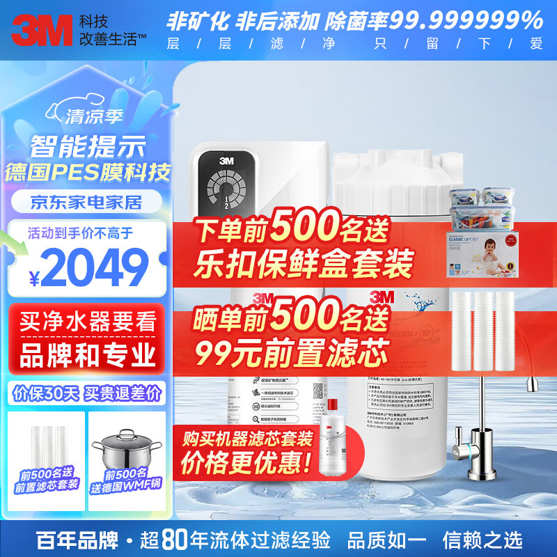 3M净水器家用净水机0废水矿物质直饮智能2.2L/分大流量700G过滤器 SW20价格:2329.00元!