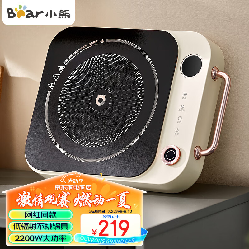 小熊(Bear)家用电磁炉 大功率电陶炉 小型电磁灶 一键爆炒炒菜 智能内外双环围炉煮茶电池炉2200W DTL-D22A1价格:219.00元!