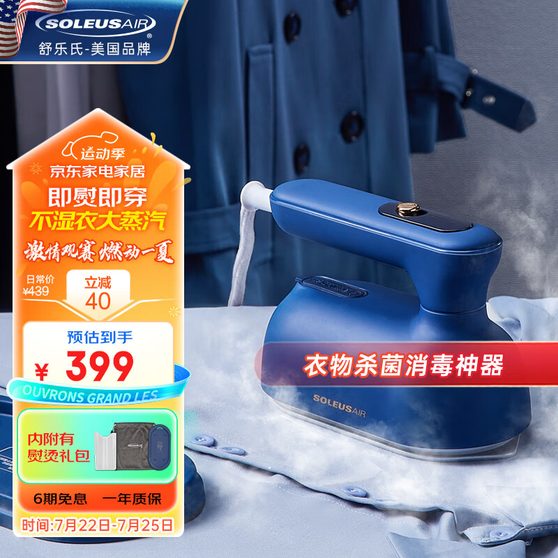 SOLEUSAIR舒乐氏手持挂烫机 家用蒸汽熨烫熨斗 旅游出差便携熨衣服小型迷你杀菌烫衣机GT1价格:399.00元!