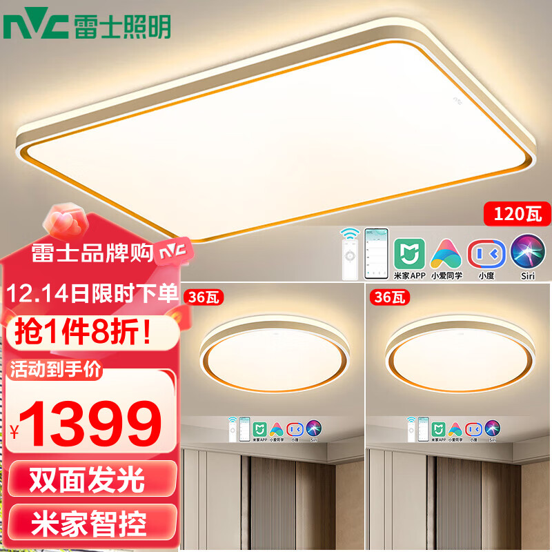 雷士(NVC)LED吸顶灯 北欧现代简约客厅卧室餐厅灯饰 AI语音智能灯具 柠梦J价格:1748.00元!