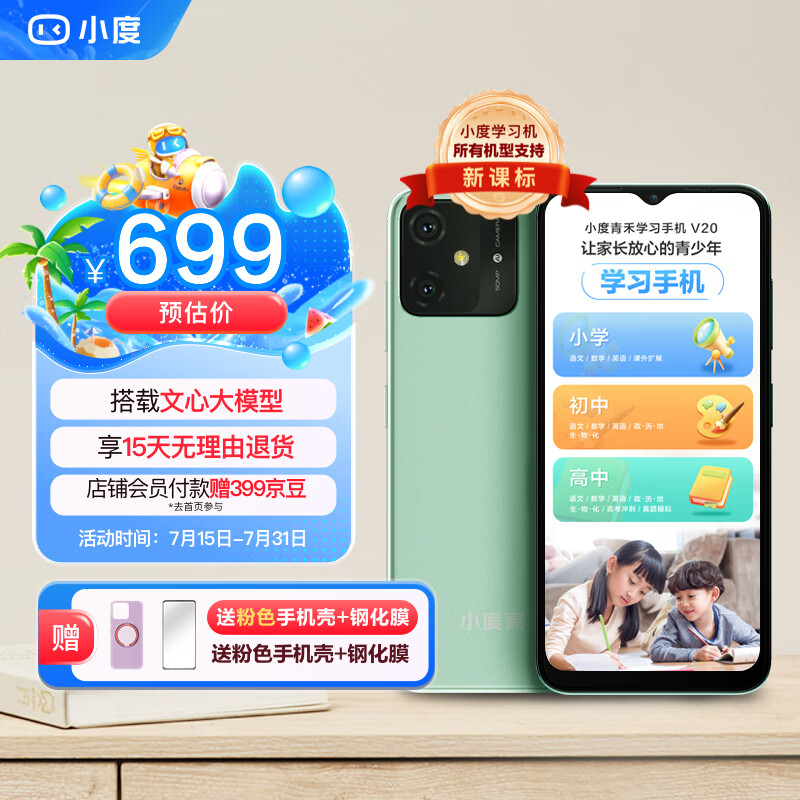 小度青禾学习手机V20 家长可控 AI老师 百度文心大模型 定制系统 小初高同步课 防沉迷 学生手机 元气粉壳价格:699.00元!