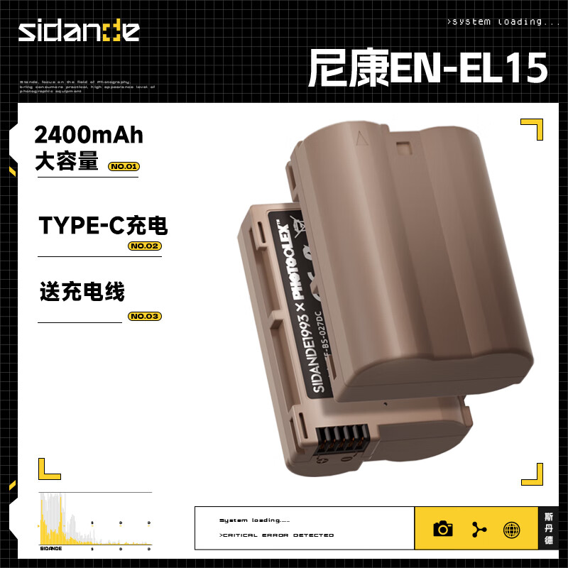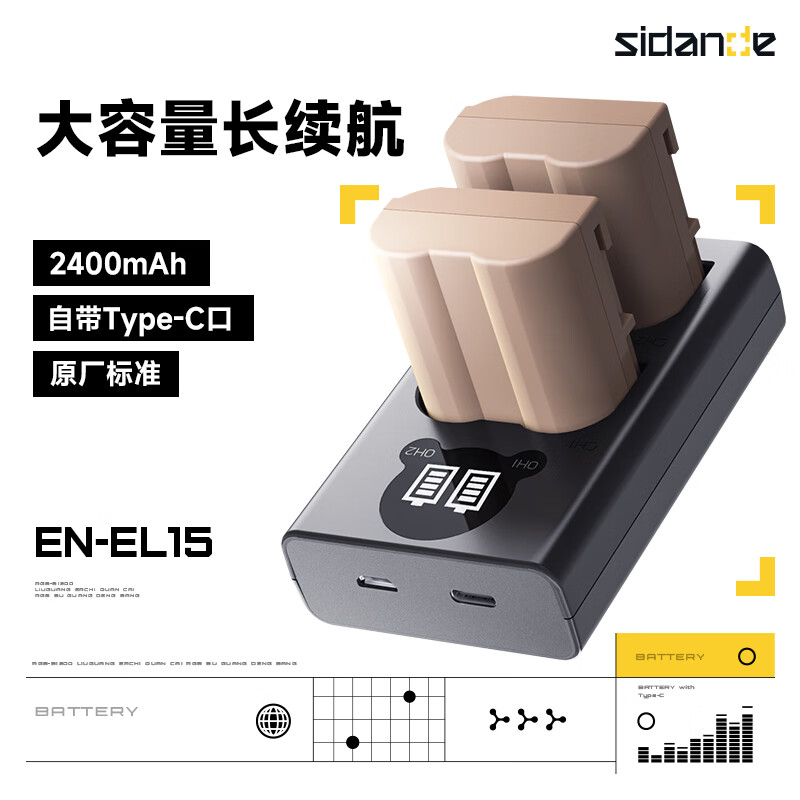 斯丹德(sidande)EN-EL15电池Type-C口2400mAh尼康单反D610 D750 D7100 D850 D800 Z7 Z6相机价格:159.00元!