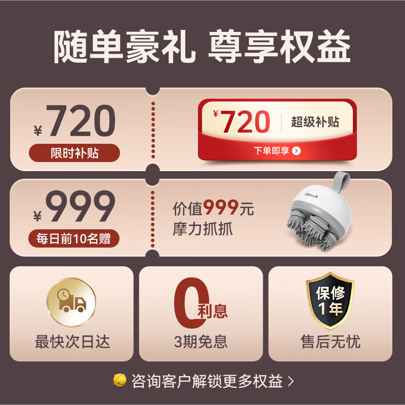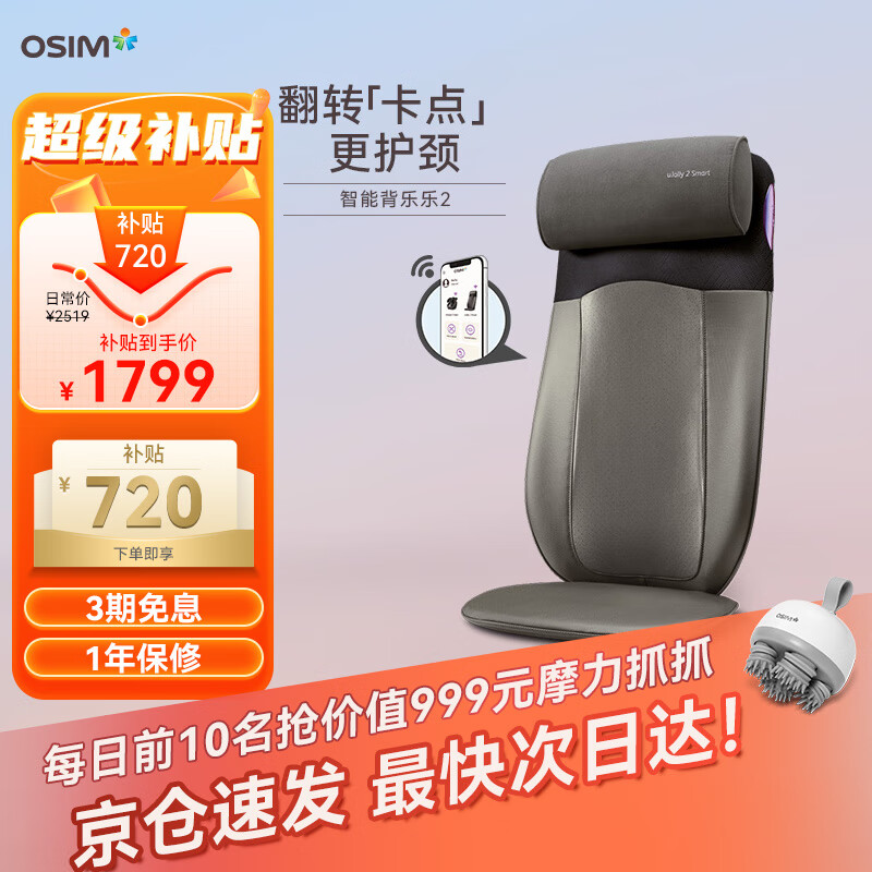傲胜(OSIM)升级按摩坐垫 按摩椅靠垫颈部背部腰部按摩背垫颈椎按摩器 智能款OS-290S 深灰色 实用礼物价格:1799.00元!