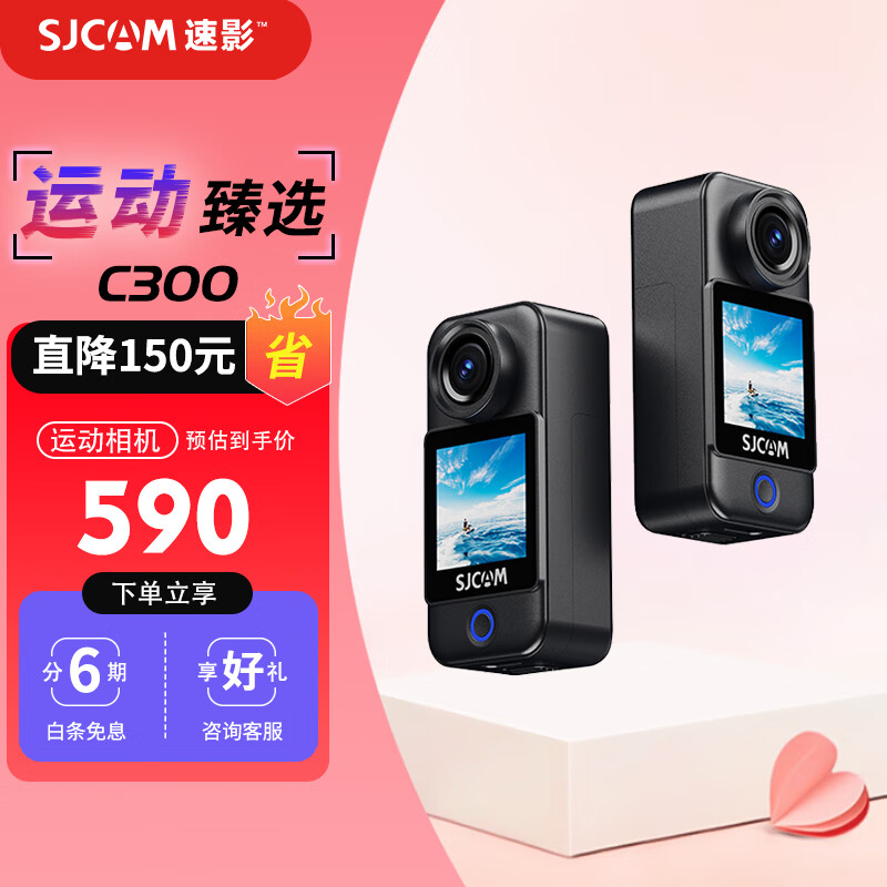 SJCAM速影 C300运动相机360摩托车行车记录仪拇指相机头戴摄像头防抖防水黑色无卡套餐价格:590.00元!