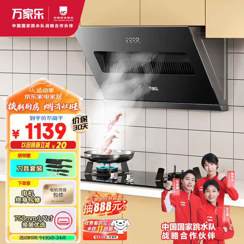 万家乐 抽油烟机 烟灶套装 18立方爆炒风 小户型侧吸式油烟机燃气灶具套装AL031+KA031B天然气价格:1439.00元!