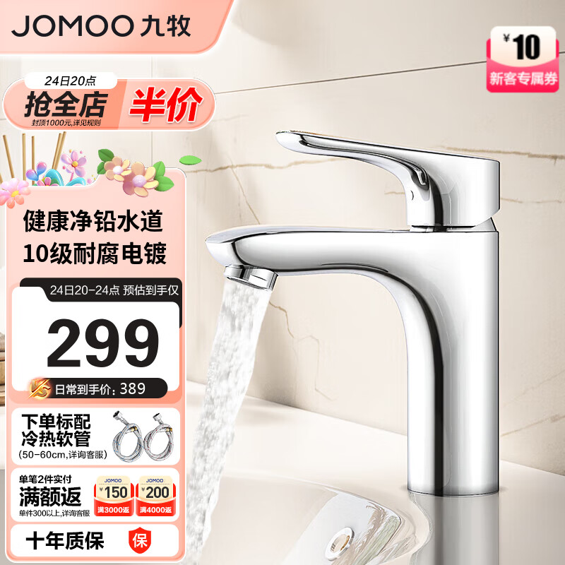 九牧(JOMOO)面盆水龙头健康低铅铜卫生间洗手洗脸盆冷热卫浴32150-556/1B-Z价格:309.00元!