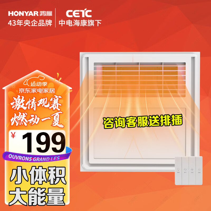 鸿雁浴霸暖风机卫生间取暖器集成吊顶风暖300x300灯排气照明一体G28价格:219.00元!