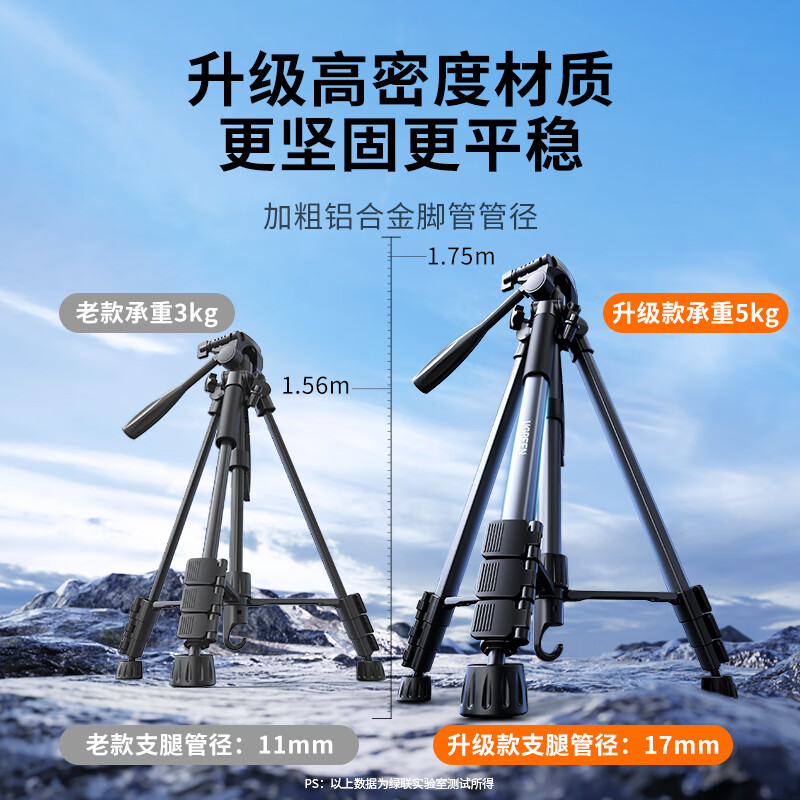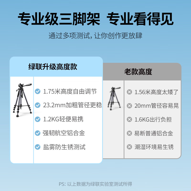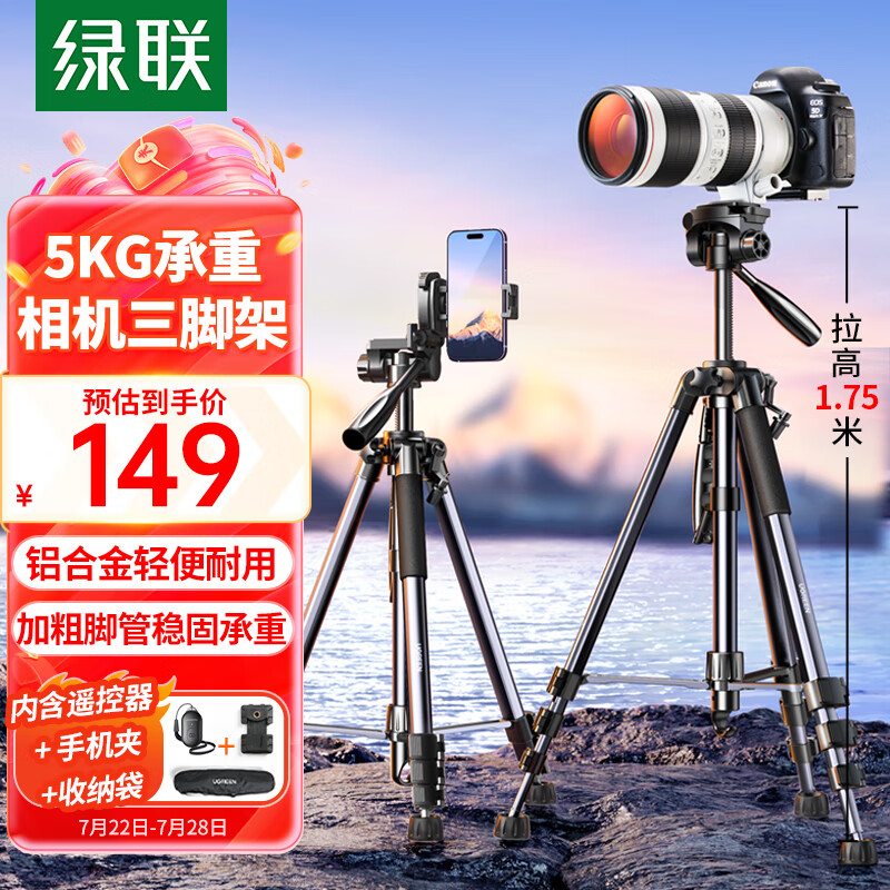 绿联(UGREEN) 三脚架相机单反手机专业摄影便携微单三脚架云台 直播录像拍摄专业防抖适用佳能索尼相机米铝合金价格:199.00元!
